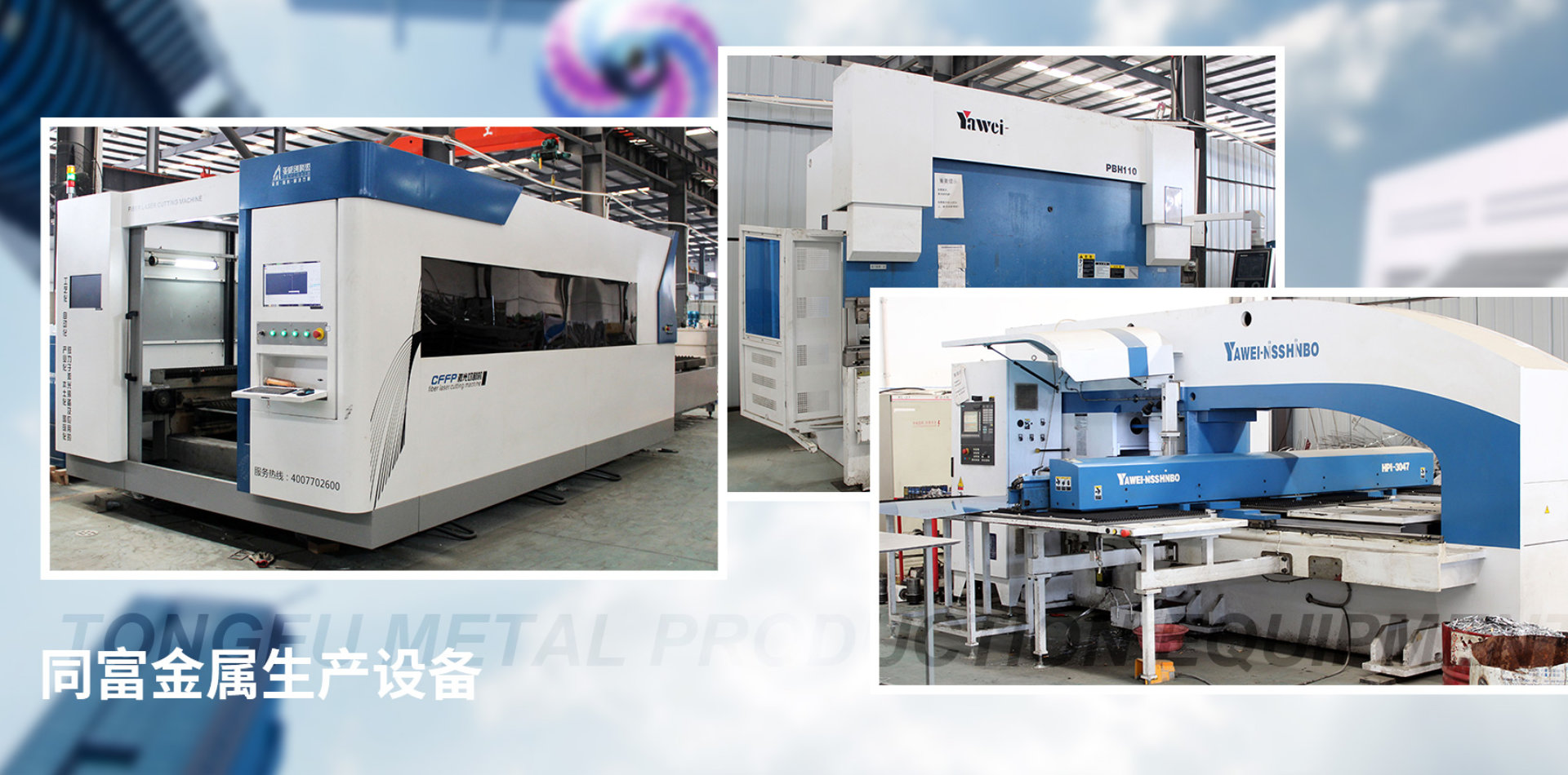 成都同富金屬制品有限公司具有雄厚的技術力量及生產工藝,業務涉及軌道、交通、通訊、安防,電教,電氣、自動化設備、廣告等多個行業。主要業務包括中低壓設備配件及箱柜、電力設備、通訊設備、各類電子機箱、機柜、電視墻、操作臺、電教臺,廣告字幅、LED箱體以及非標精密鈑金結構件。此外有非標產品開發、設計承接任何板金設計及加工等服務。此外有非標產品開發、設計承接任何板金設計及加工等服務。